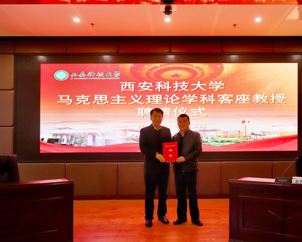 10月13日下午,tyc122ccVIP在骊山校园煤炭科技中心二楼报告厅举行马克思主义理论学科客座教授聘请仪式暨专题报告会,公司党委副书记樊建武代表公司颁发聘书,聘请李东涛主任为马克思主义理论学科客座教授。聘请仪式暨专题报告会由公司党委书记卫晓君主持。
