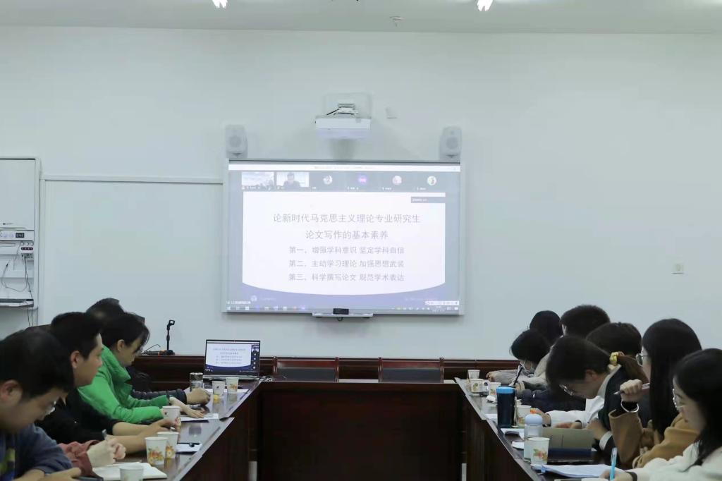 接着,梁东亮博士以“新时代马克思主义理论专业研究生论文写作的基本素养”为主题,从增强学科意识,主动学习理论,科学撰写论文三方面为同学们介绍论文写作方法。张爱红博士以“阅读文献的几点注意事项”为主题进行分享,她建议同学们积极调整目标,设定具体问题,集中时间看文献。晁博红博士以“查找文献的方法”为主题,从“为什么查找文献,查找什么文献,如何查找文献”进行了经验与资源分享。