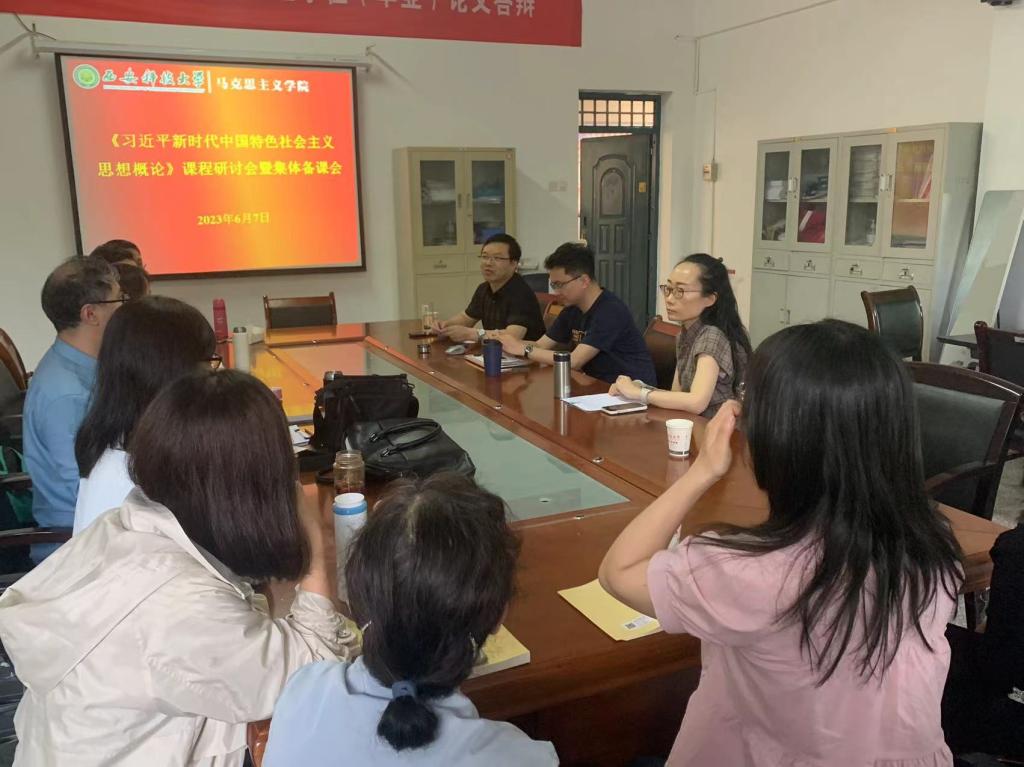 2023年6月7日下午,教研室在临潼校区骊山校园1-208会议室召开课程建设暨集体备课会,全体老师参加会议。会议全面总结交流自今年4月份召开的校领导、党委委员与《习近平新时代中国特色社会主义思想概论》全体任课教师参加的集体备课会之后的教学体会,及时传达学习公司党委书记蒋林、公司党委副书记樊建武一行到tyc122ccVIP开展调研的讲话精神,就近期课堂教学效果、实践环节教学进度、期末考试内容分布和题型设计等方面,展开了集中研讨。
