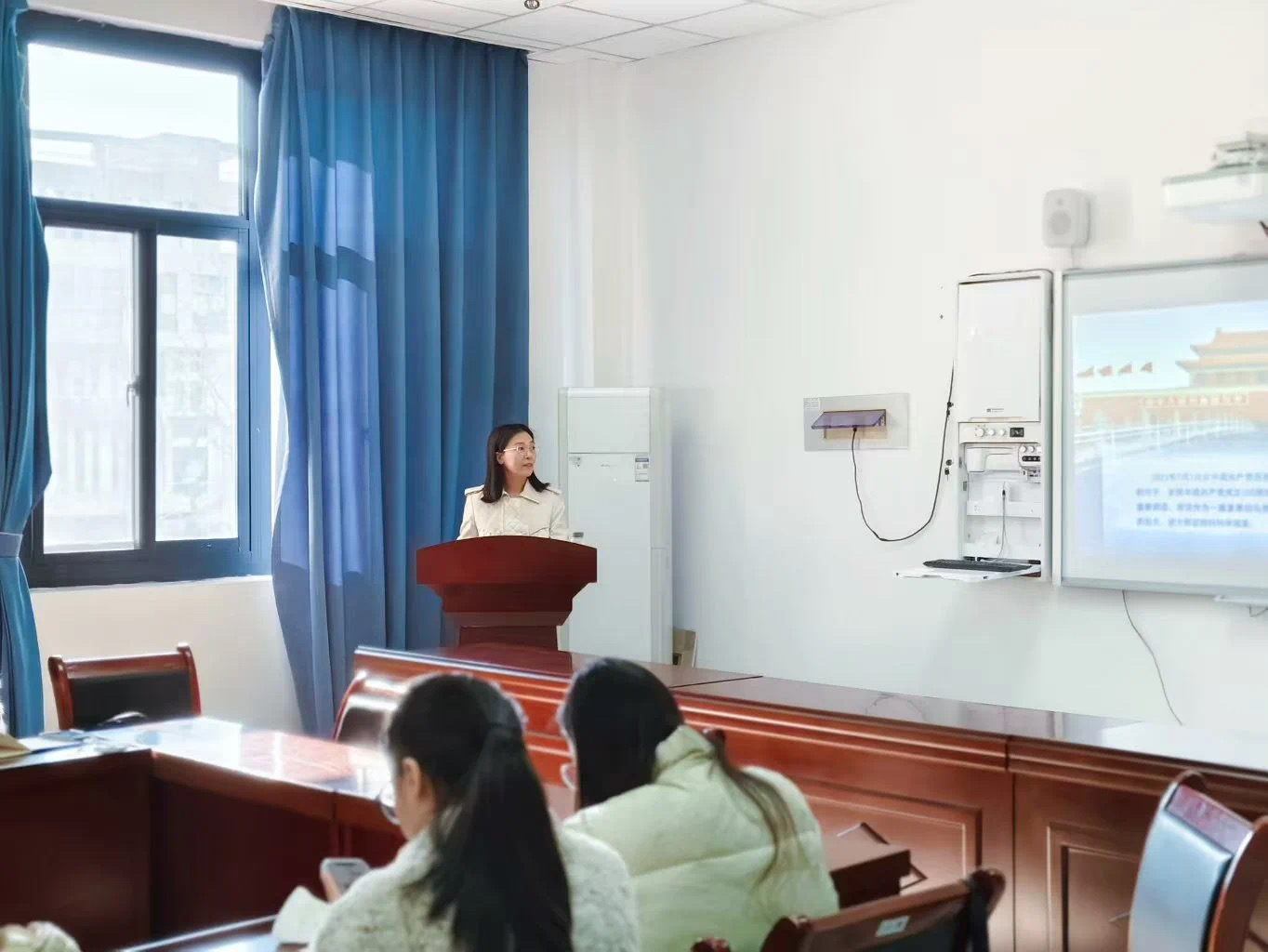 任忠惠老师则以“精神之源薪火相传——伟大建党精神”为题,凭借深厚的理论造诣与丰富详实的历史资料,深入挖掘伟大建党精神所蕴含的重大意义。任老师着重强调,伟大建党精神作为中国共产党的精神之源,承载着党的初心与使命,始终如一地激励着一代又一代中国共产党人在追求中华民族伟大复兴的光辉征程中奋勇拼搏、砥砺前行,乃是党在不同历史阶段成功应对重重挑战、斩获伟大胜利的关键精神动力所在,使师生们对党的精神传承有了更为深刻透彻的感悟。