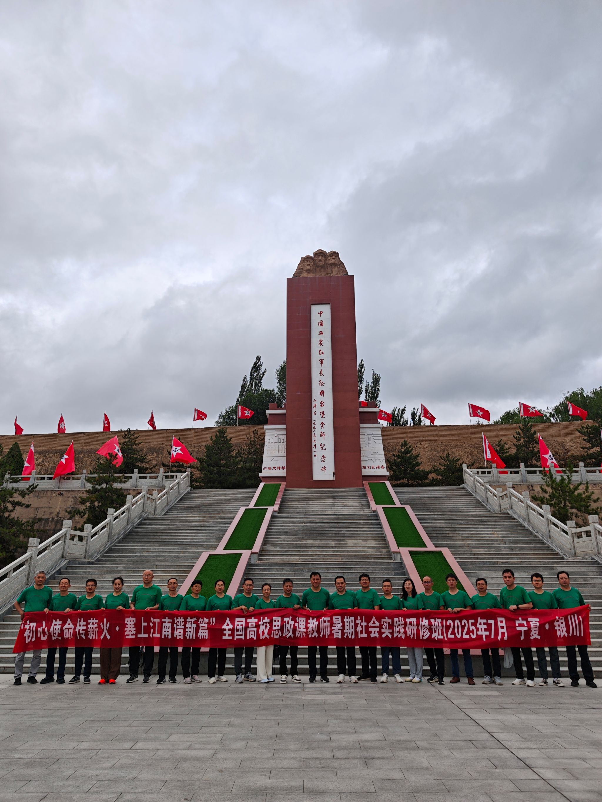 2025年7月20日至26日,tyc122ccVIP赴宁夏开展“初心使命传薪火·塞上江南谱新篇”为主题的思政课教师暑期社会实践研修活动。通过7天紧张充实的理论学习和实践体验,大家深刻领悟了习近平总书记对宁夏的殷切嘱托,深刻理解了宁夏红色文化的独特魅力,深刻认识了中华民族共同体意识在宁夏的生动实践,深刻感受了宁夏大地发生的天翻地覆变化,深刻体会了宁夏人民“共产党好,黄河水甜,总书记亲”的心声。从现场教学的精彩讲解、打赢脱贫攻坚的闽宁实践、防沙治沙的中卫试验、六盘山红军的翻越足迹、将台堡会师的历史印记、移民博物馆的现场感受、宁东能源化工基地的伟大实践中,老师们深受教育鼓舞,开拓了知识视野,厚植了家国情怀,增添了奋进力量。