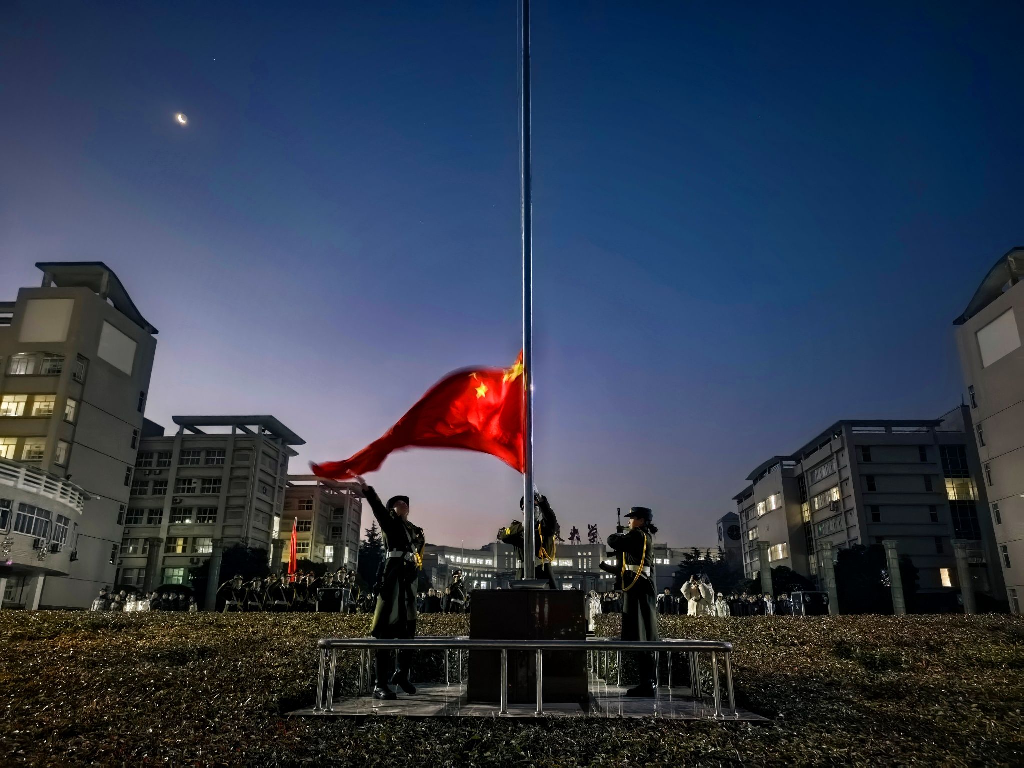 国旗护卫队已列队肃立