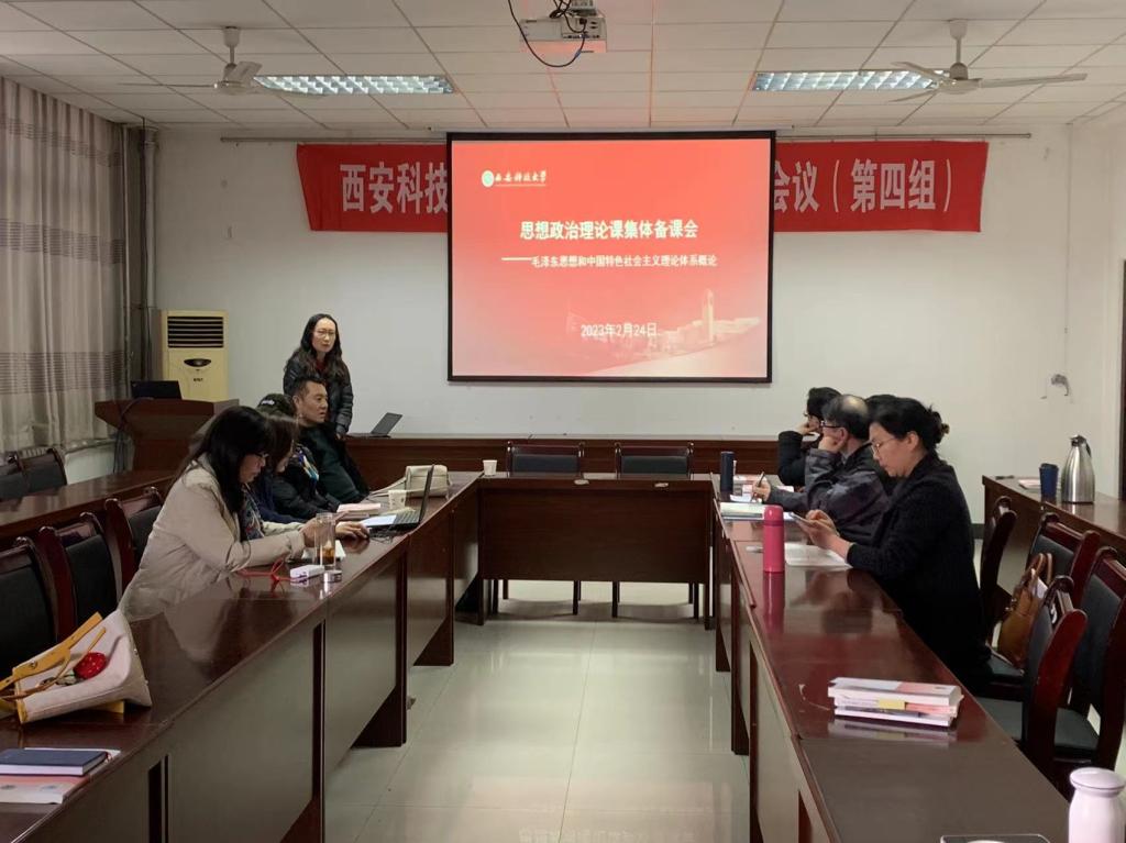 2023年2月24日下午,马克思主义中国化教研室在雁塔校区公司会议室举行了以“《毛泽东思想和中国特色社会主义理论体系概论》2023版教材新内容向教学体系转化”集体备课会。教研室全体老师参加。