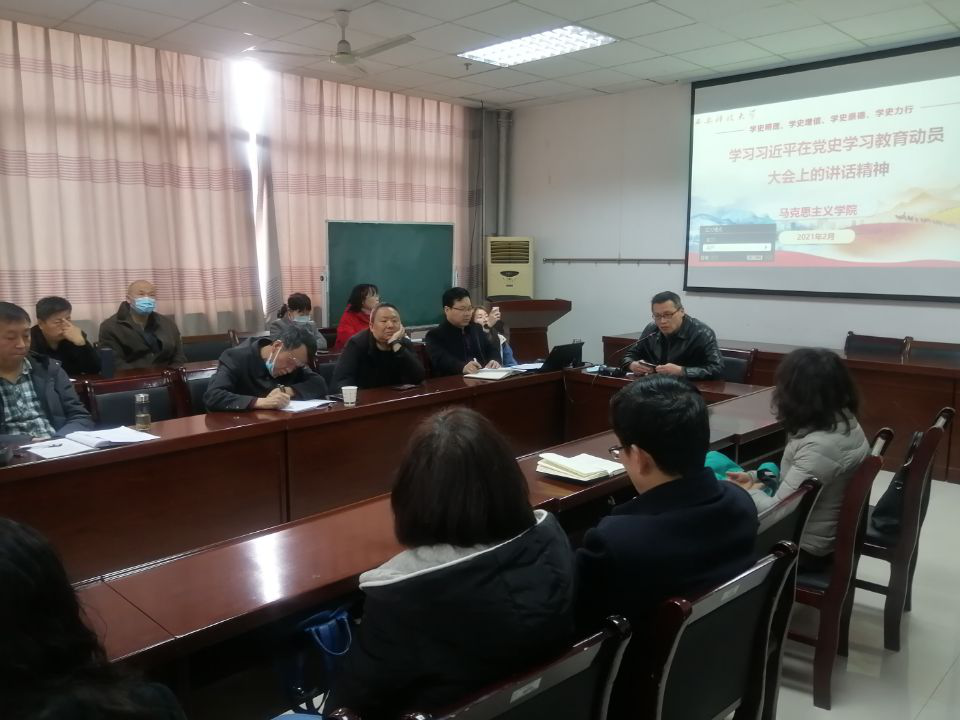 2月27日上午,tyc122ccVIP在雁塔校区煤炭科技大楼1101会议室召开大会,集体学习习近平在党史学习教育动员大会上的重要讲话精神。公司班子及全体教职工参加了会议。