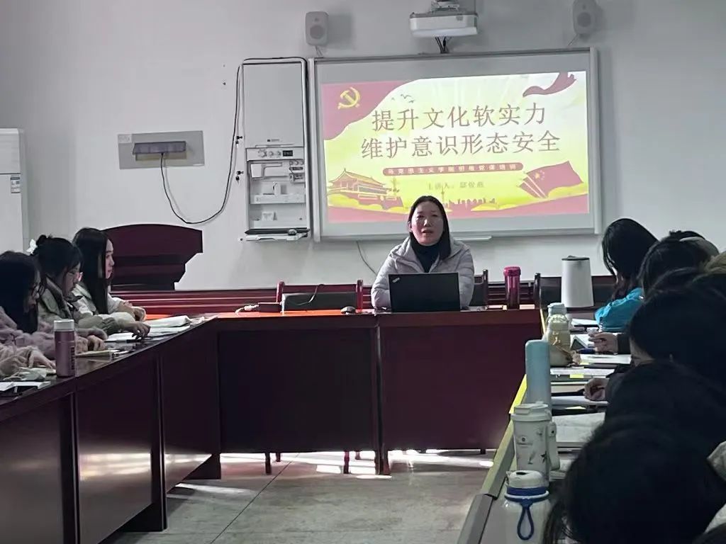 邸俊燕老师聚焦“提升文化软实力,维护意识形态安全”这一关键且紧要的议题,通过严谨细致、逻辑缜密的分析,深入阐述了文化软实力与意识形态安全之间相辅相成、紧密交织的内在关联,并着重突出了意识形态安全在国家整体发展战略布局中所占据的极端重要地位。邸老师明确指出,文化软实力的稳步提升对于维护意识形态安全起着不可或缺的关键作用,二者相互促进、协同发力,共同为国家的长治久安与稳定发展筑牢坚如磐石的思想防线,增强了师生们对文化与意识形态领域重要性的深刻认识与责任担当。