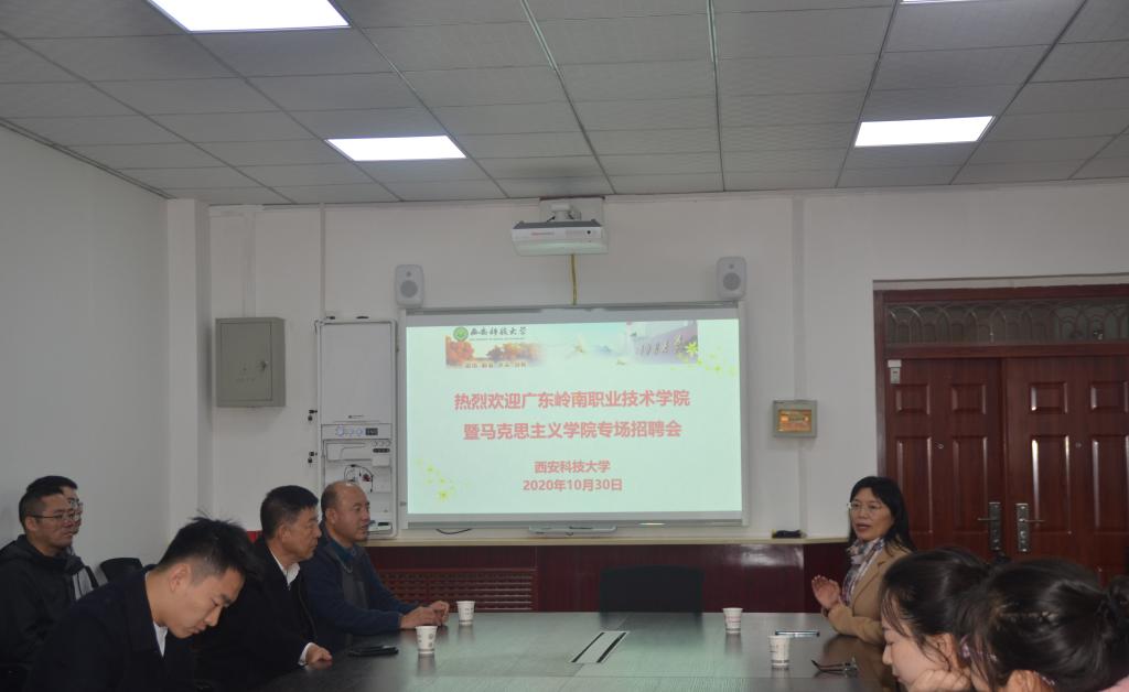 10月30日,广东岭南职业技术公司党委书记、副董事长柴克生,组织部部长易中华,tyc122ccVIP经理韩丽萍一行三人来公司举行tyc122ccVIP专场招聘会。公司学工部部长李建明、副部长孙再罗,tyc122ccVIP副经理张铭钟,马克思主公司研究生辅导员韩帅及2021届应届毕业生参加招聘会。