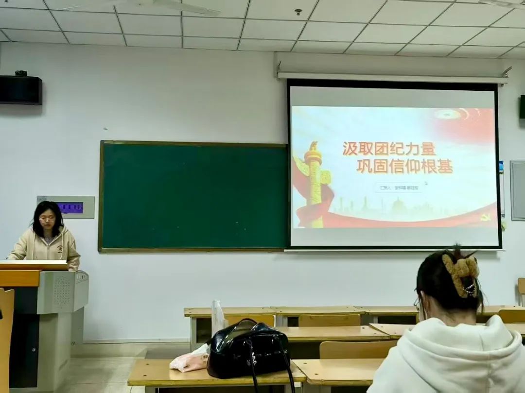 活动伊始,张梓晴同学对《中国共产主义青年团纪律处分条例(试行)》进行了详细解读,深入阐述了条例的重要条款以及制定背景。作为新时代青年团员,我们要将团纪内化于心、外化于行,严格遵守团内纪律,在学习和生活中发挥模范带头作用。