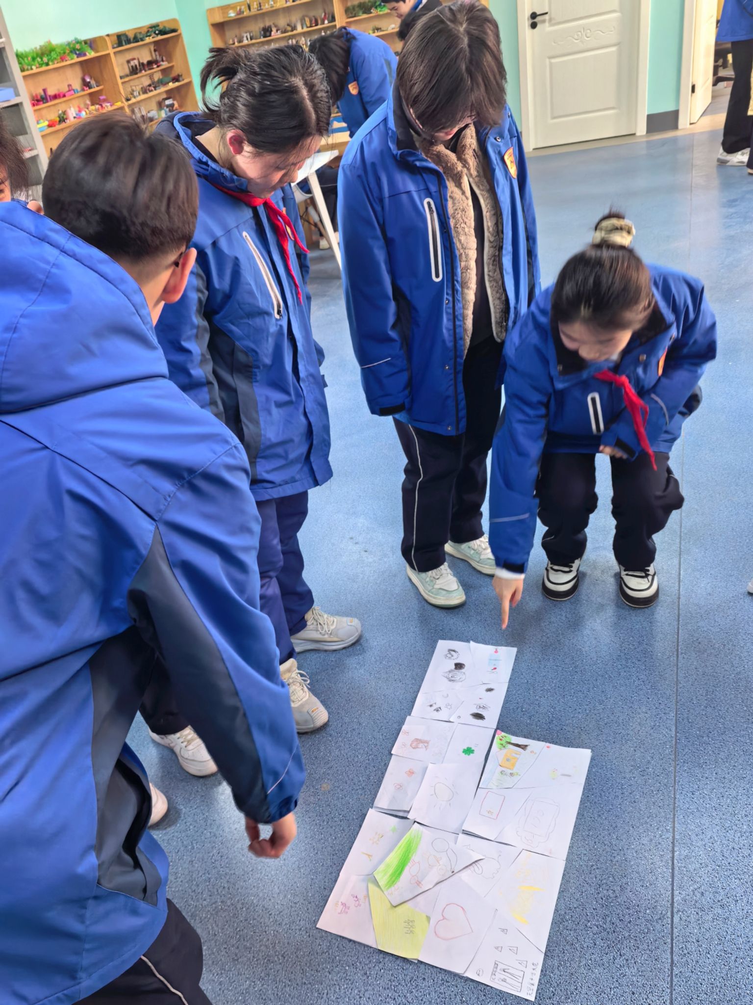 通过“折纸澄心”“纸片找伙伴”及集体绘画等核心环节,同学们在志愿者们暖心陪伴、真诚鼓励与温柔回应下,从最初的被动参与,到主动分享心中期许,再到积极寻找同伴共同完成创作,孩子们一步步敞开心扉,学着接纳他人,实现从关注“小我”到心系“大我”的认知提升,深刻体会到团结协作与包容差异的价值。