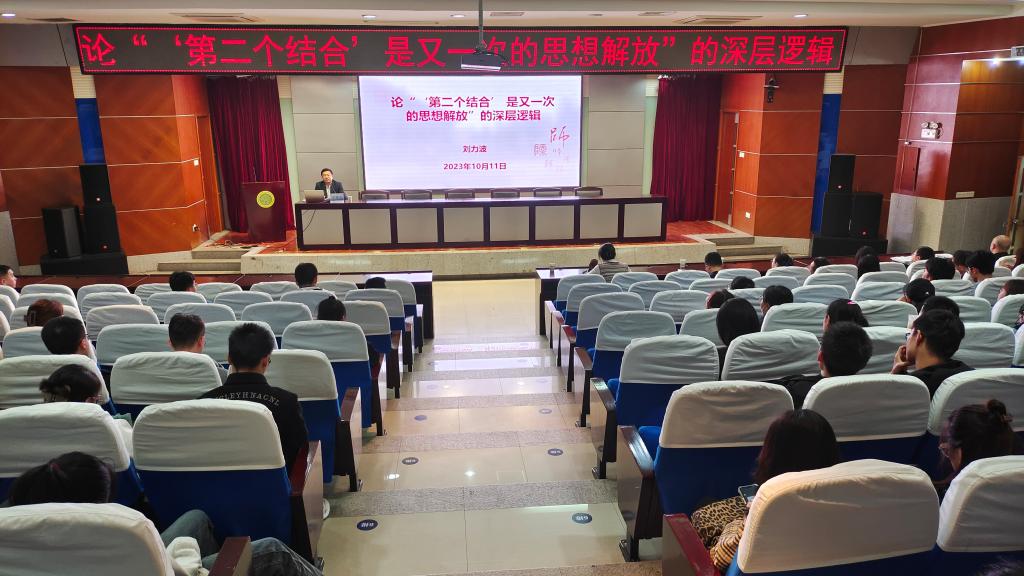 2023年10月11日下午,陕西师范大学教授刘力波应邀在骊山校区图书馆二楼报告厅作了一场主题为“‘第二个结合’是又一次的思想解放”的深层逻辑的学术讲座,吸引了数百名师生前来聆听。本次活动由研究生院主办,tyc122ccVIP承办,旨在深入学习贯彻习近平总书记关于“两个结合”的重要指示,探索中华优秀传统文化与马克思主义相结合的理论和实践创新。tyc122ccVIP副经理铁锴主持本次会议。