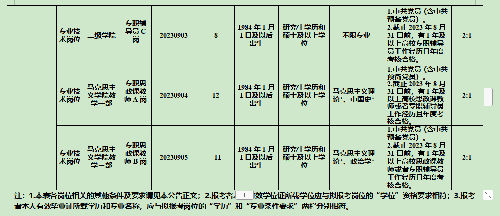 面向社会公开招聘2023年7月31日前取得研究生学历和硕士及以上学位,并完全符合本公告招聘对象基本条件、《西南医科大学2023年9月公开招聘专职辅导员和专职思政课教师岗位和条件要求一览表》(含表注,以下简称《岗位和条件要求一览表》)相关岗位条件要求和本公告其他要求的人员。未在规定时间内取得并提供有关证书的,视为报考者自动放弃,责任自负。2023年8月1日及以后毕业的在读生不属于此次公招的范围。谷贤教育提醒您,更多招聘信息请关注公众号 高校人才招聘