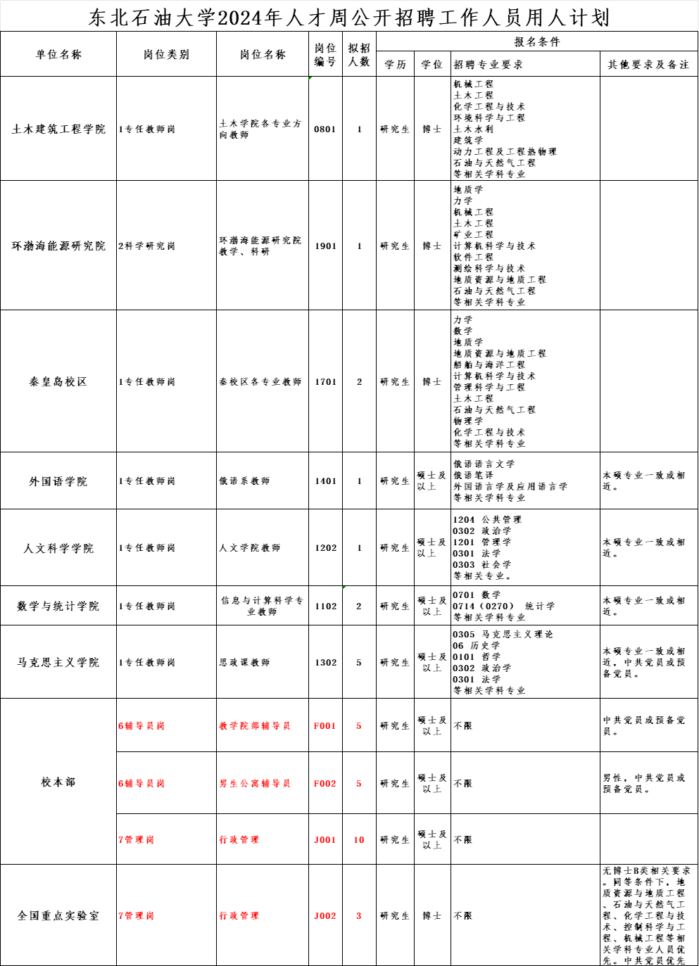(1)东北石油大学2024年公开招聘工作人员信息表(附件2)。