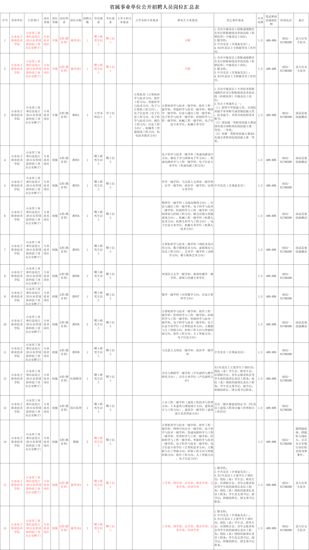 附件:1.省属事业单位公开招聘人员岗位汇总表