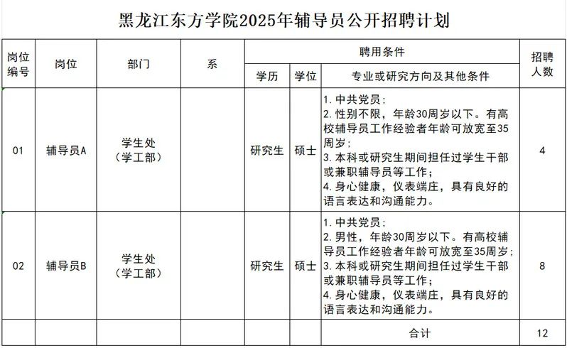 (一)报名方式:登录黑龙江东方公司简历投递平台(http://dfxy.zhanyiwangluo.com),应聘岗位编号见《黑龙江东方公司2025年辅导员公开招聘计划》。